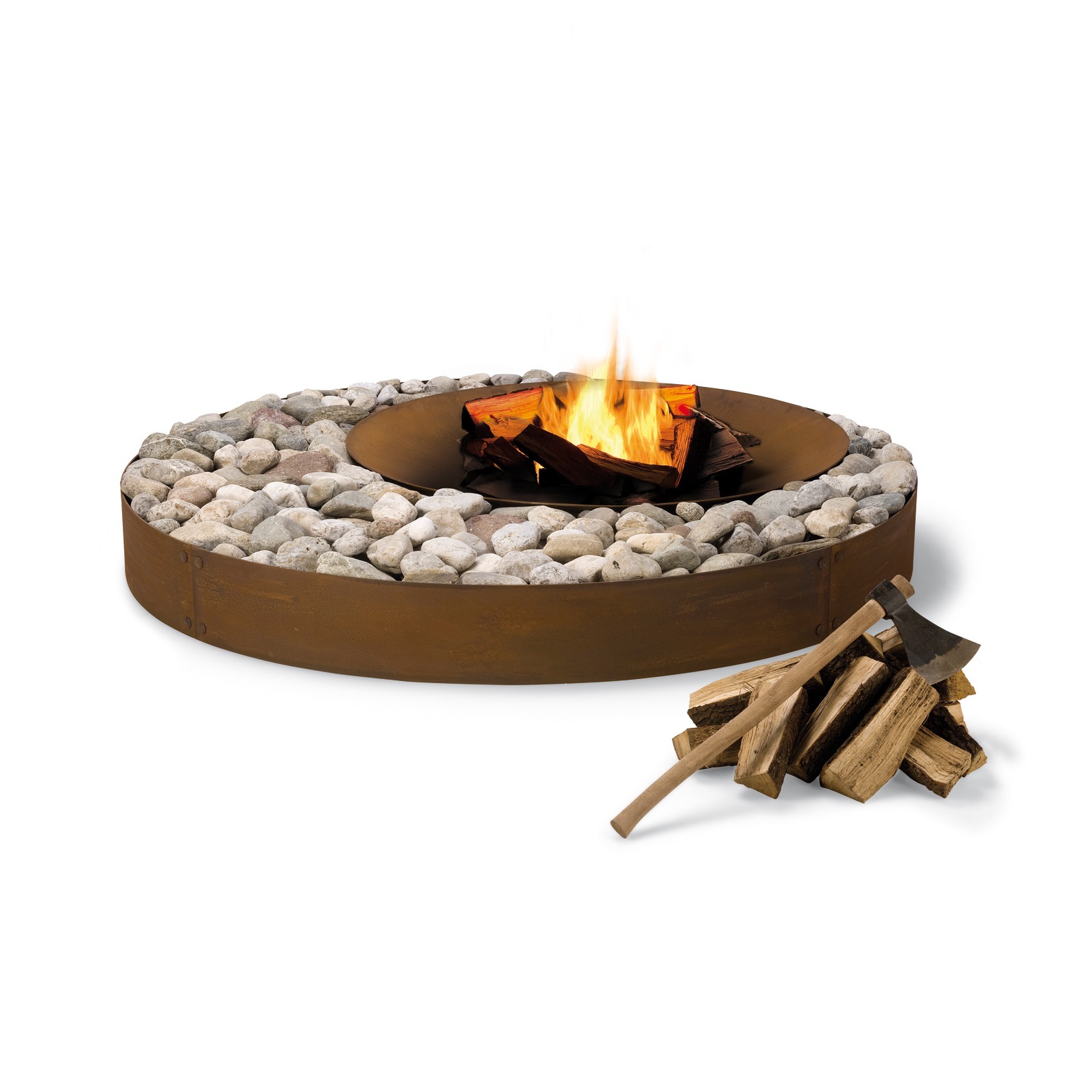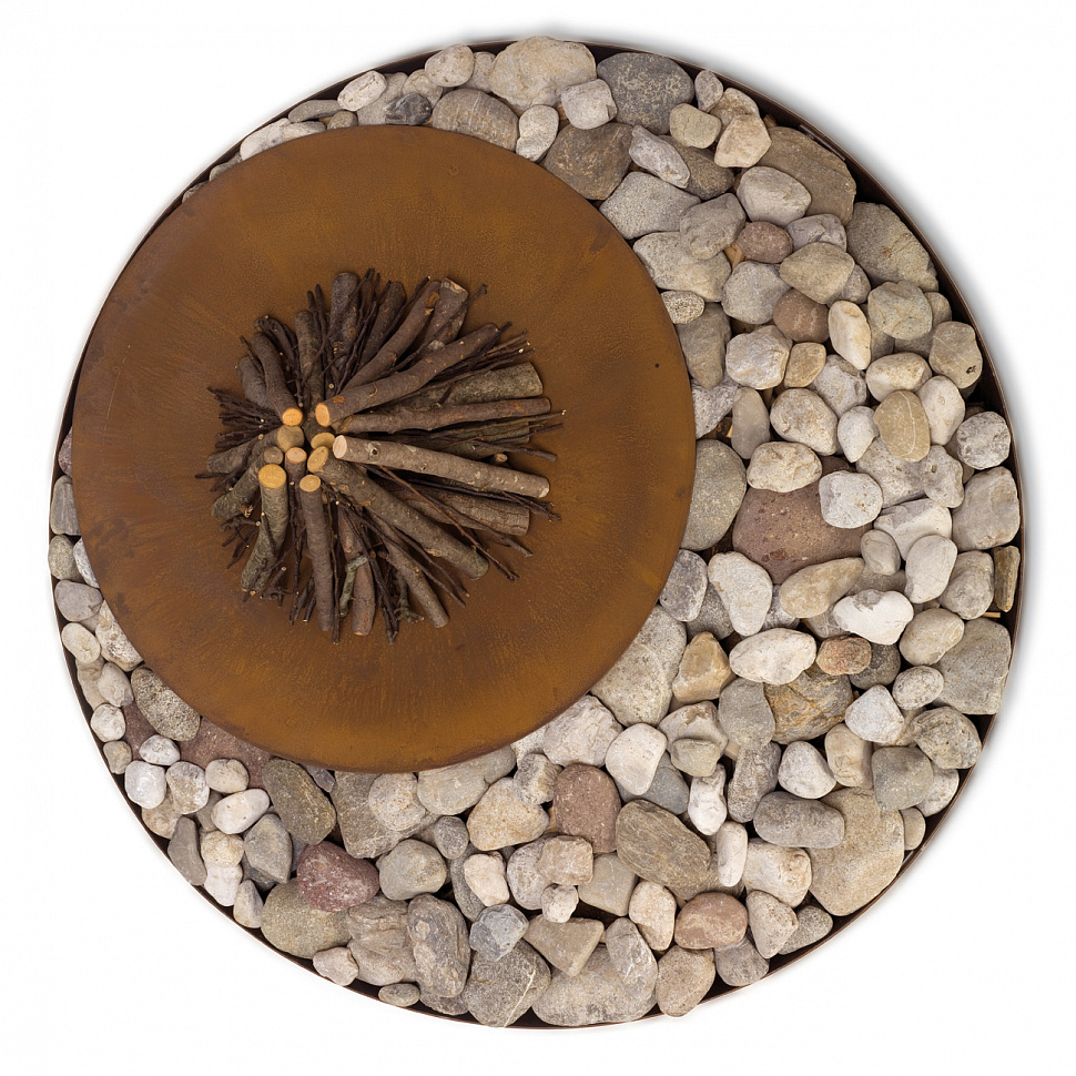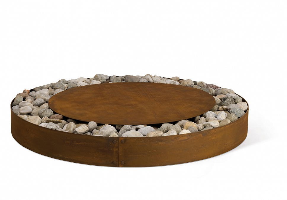 Обечайка (большой высокий обруч), очаг на подставке, крышка на очаг, декоративные огнеупорные камни.