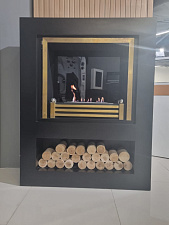 - Встраиваемый камин стоит заказать и купить, если вы готовы приложить больше усилий. Его можно встроить в пол, в стену, даже в стол. Цена зависит от комплектации и габаритов.