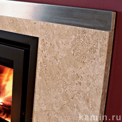 Обрамление из тигрового восточного мрамора со вставками из нержавеющей стали.