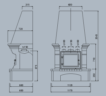 - Диаметр дымохода, (мм) 150